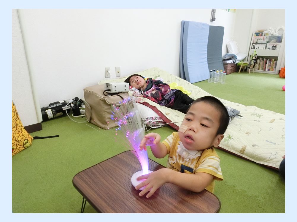 ※一日の活動では、その日の児童の体調や好みに合わせて、お散歩へ行ったり、絵本の読み聞かせをしたり、おもちゃで遊んだり、足湯でリラックスしたり、音楽映像鑑賞等、多岐に渡る活動をしています。祝日や長期休暇中は施設外活動やイベントを行うこともあります。